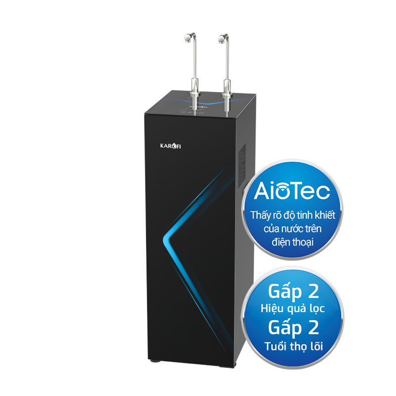 Với công nghệ AioTec bạn có thể an tâm kiểm soát chất lượng nước mọi lúc mọi nơi kể cả khi vắng nhà. Đây cũng là xu hướng của các gia đình hiện đại, chỉ cần sở hữu điện thoại thông minh tải ứng dụng Karofi 365, bạn có thể kiểm tra được: độ sạch của nước, thời hạn thay lõi lọc, tình trạng máy, kích hoạt bảo hành, liên hệ nhanh tới CSKH…