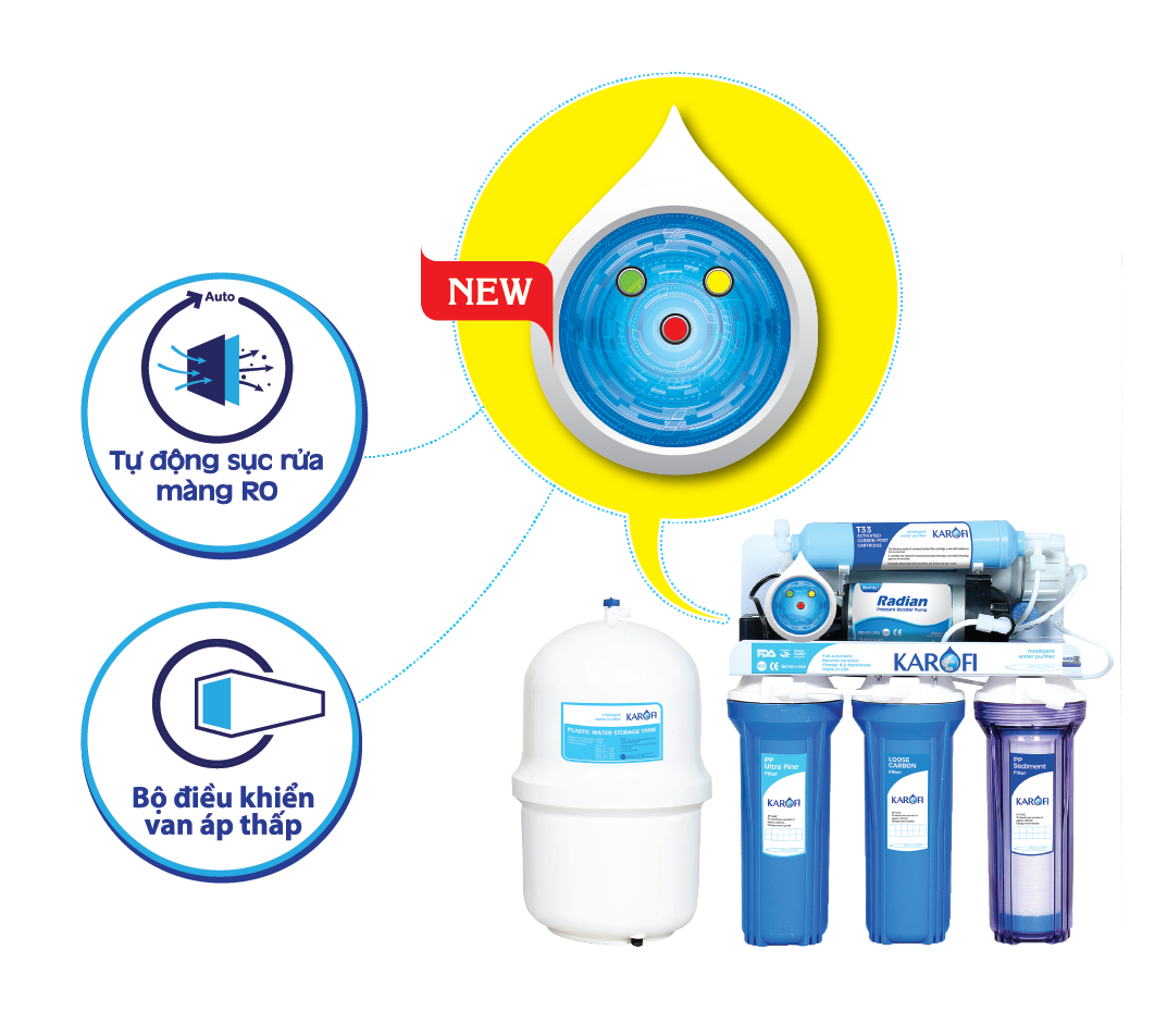 - Tự động sục rửa màng RO giúp tăng tuổi thọ của màng tiết kiệm chi phí thay màng lọc.